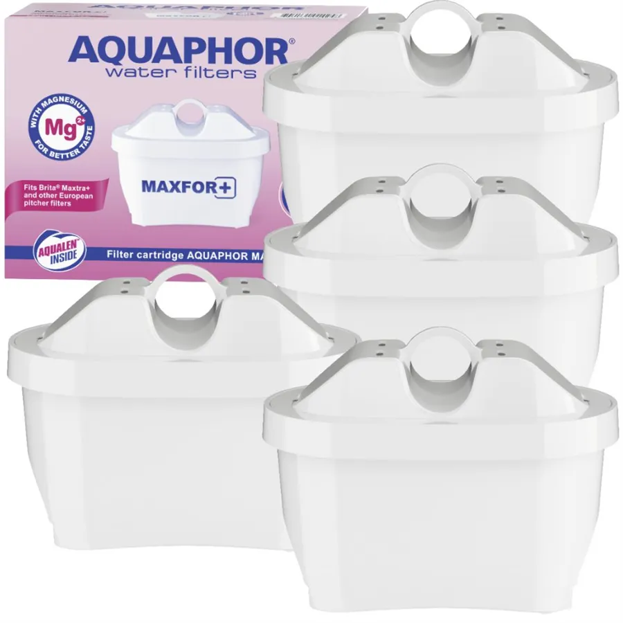 Balení obsahuje 4 ks filtru Aquaphor Maxfor+ Mg.