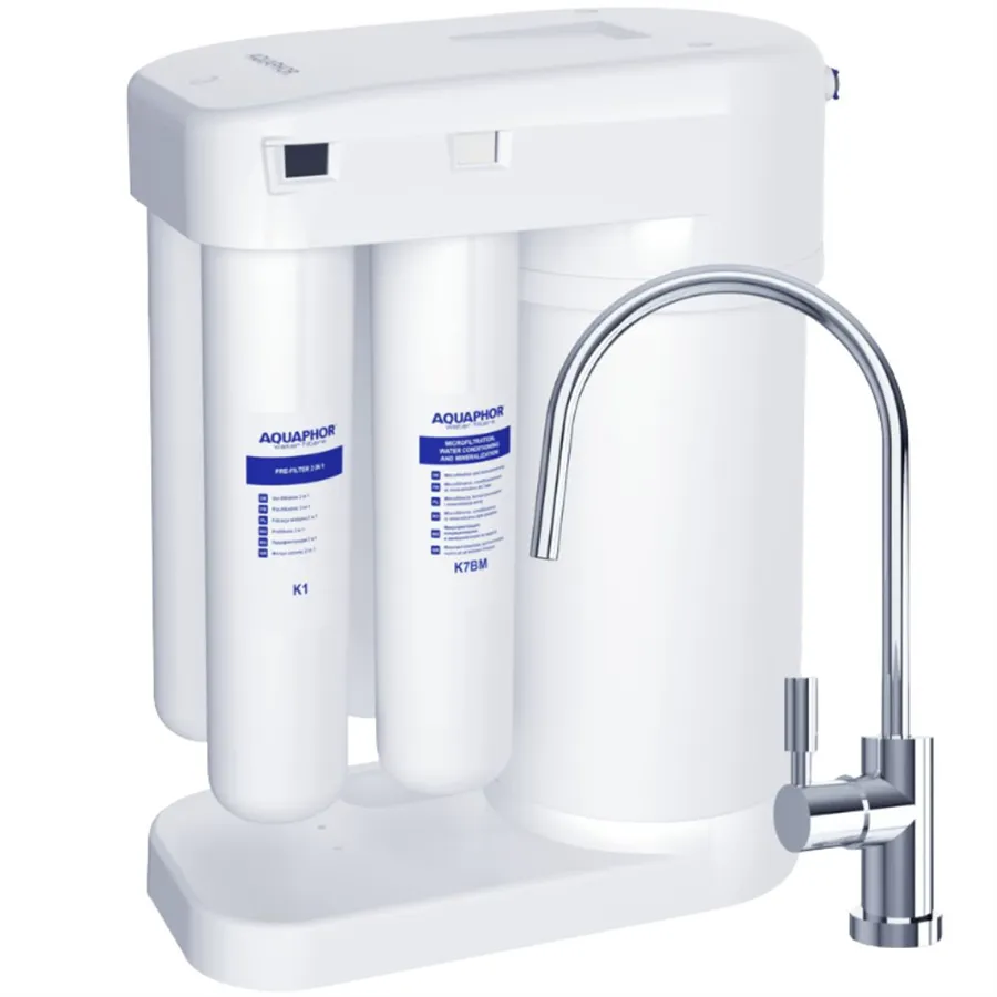 Systém reverzní osmózy Aquaphor RO-101S Morion pokrývá všechny problémy čištění vody v domácnosti a zcela nahrazuje prémiovou balenou vodu. Na kvalitě vstupní vody nezáleží, membrána RO-101S Morion je dlouhodobým štítem proti toxickým látkám, těžkým kovům, pesticidům, bakteriím.