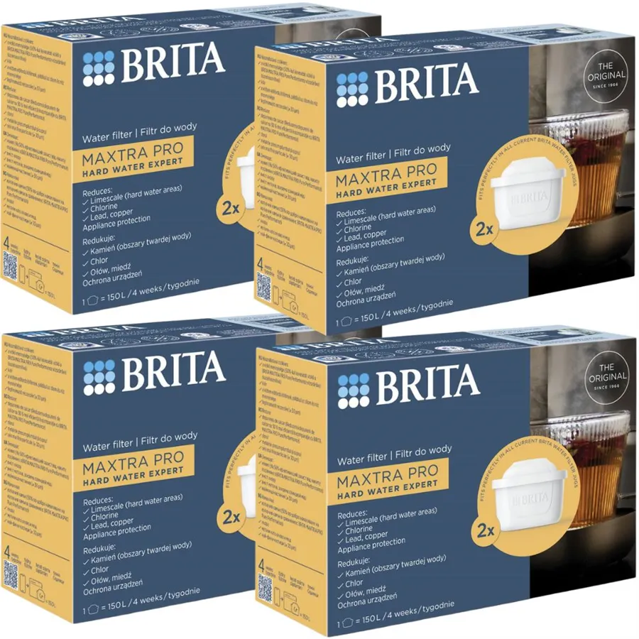 Balení obsahuje 8 filtrů Brita Maxtra Pro Hard Water Expert.
