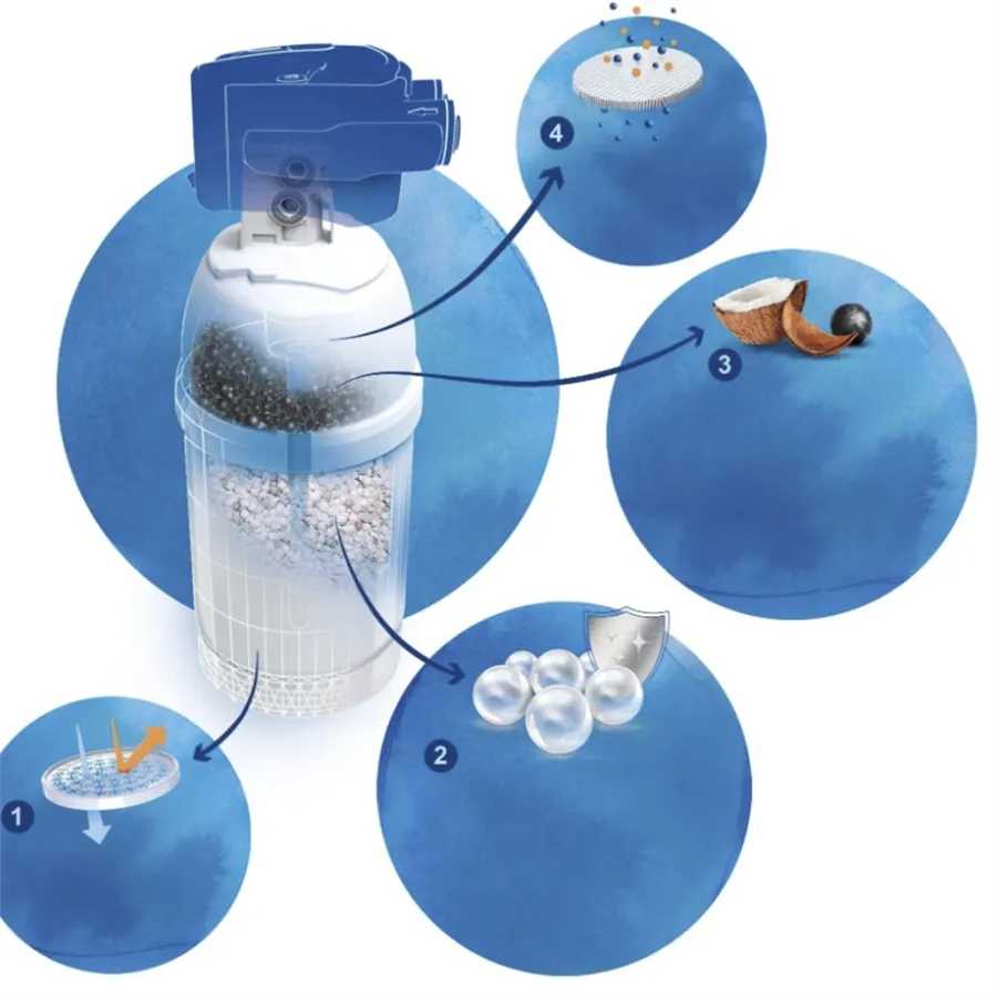Technologie Brita P 1000 redukuje obsah chloru, olova a dalších těžkých kovů, herbicidů, pesticidů a mikroplastů.
