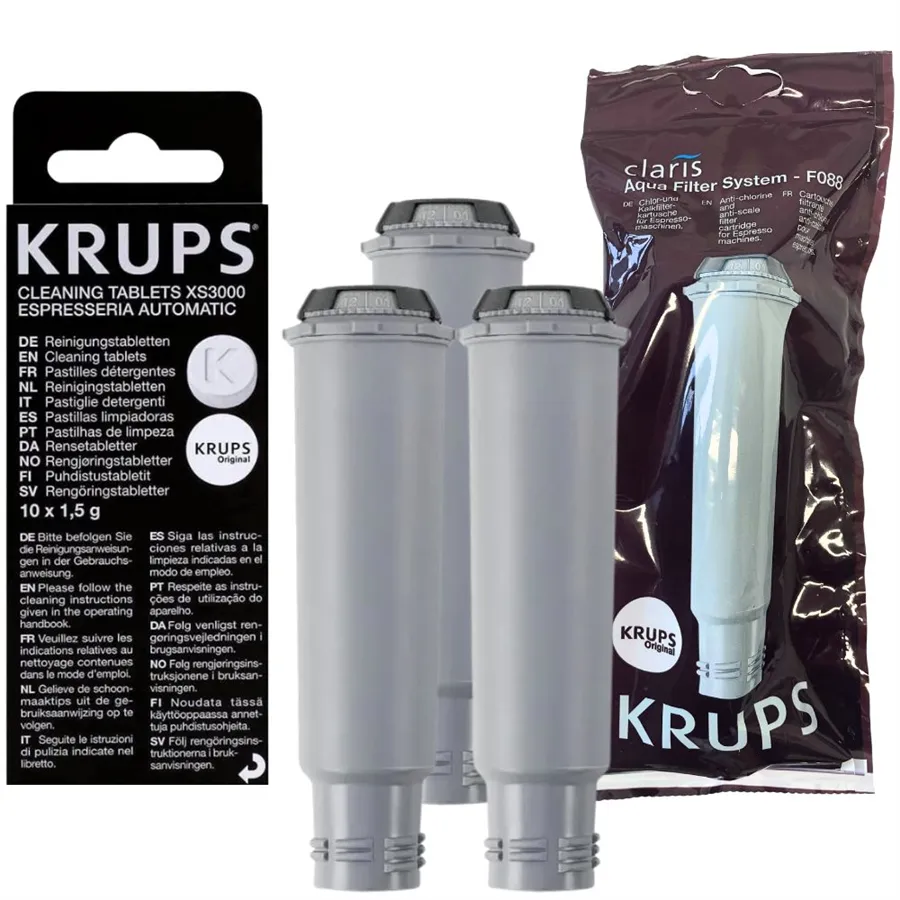 Krups F08801 Aqua Filter Claris 3 ks + XS300010 čisticí tablety
