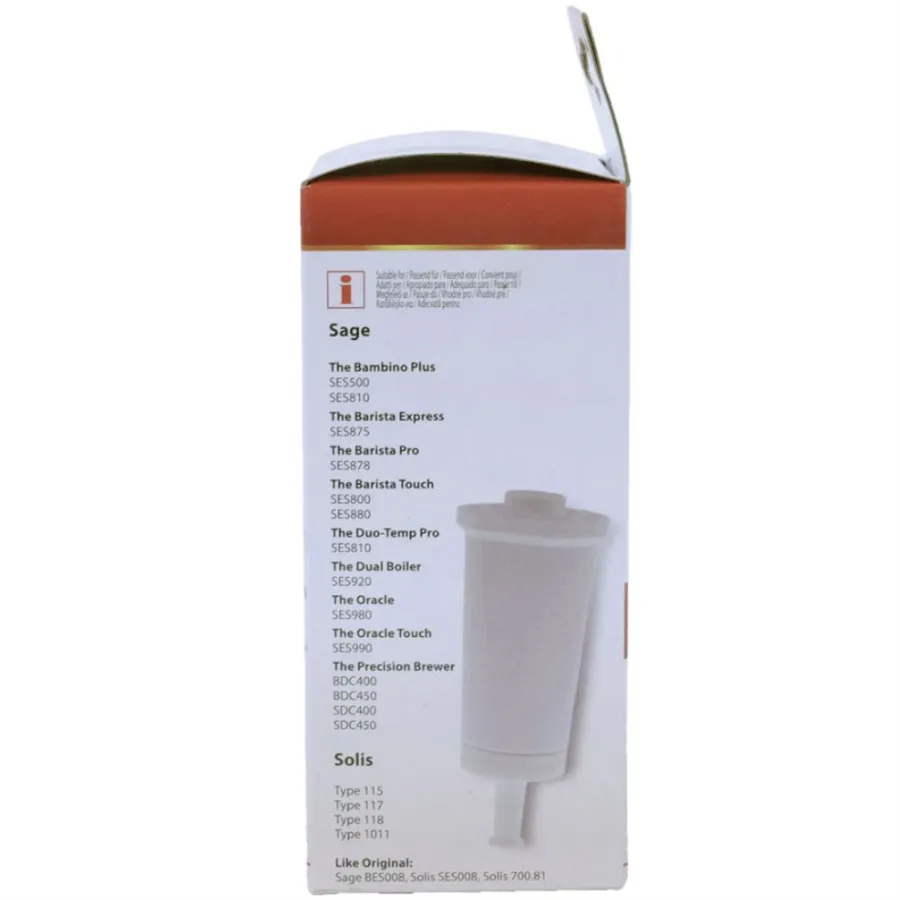 Každá filtrační patrona redukuje chlor, olovo, měď a pesticidy, které nepříjemně ovlivňují chuť kávy. Zároveň chrání vnitřní části vašeho kávovaru Sage nebo Solis před usazováním vodního kamene.