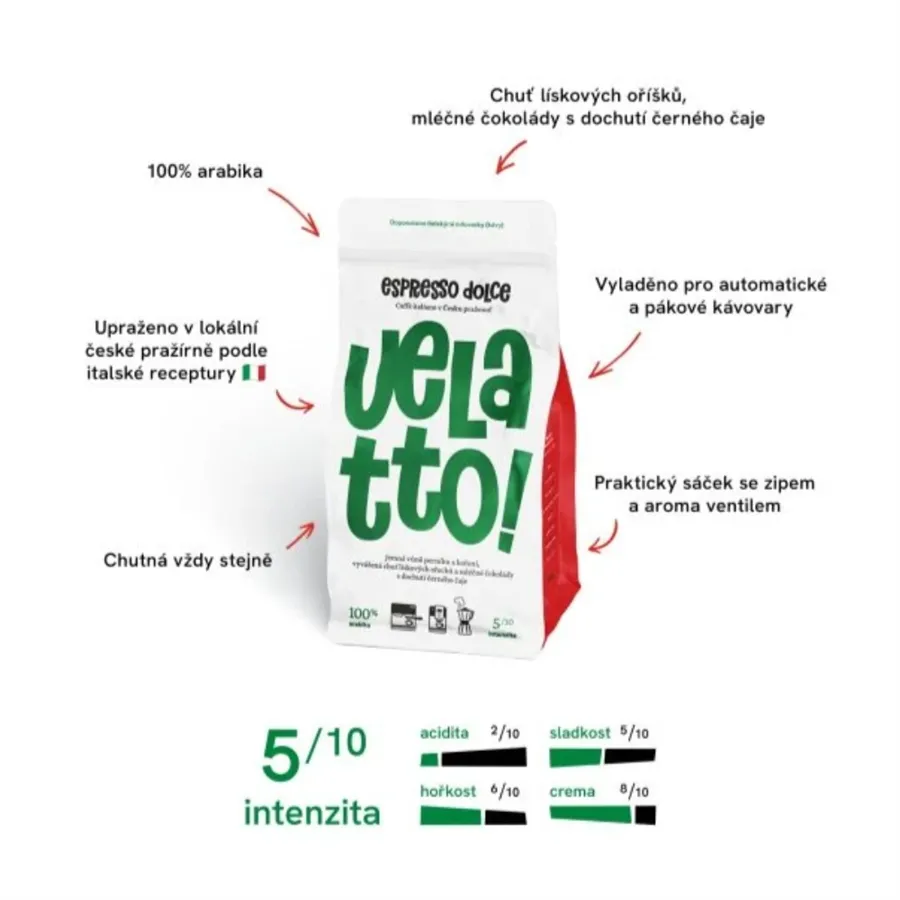 Velatto Espresso Dolce zrnková káva (100% Arabika)